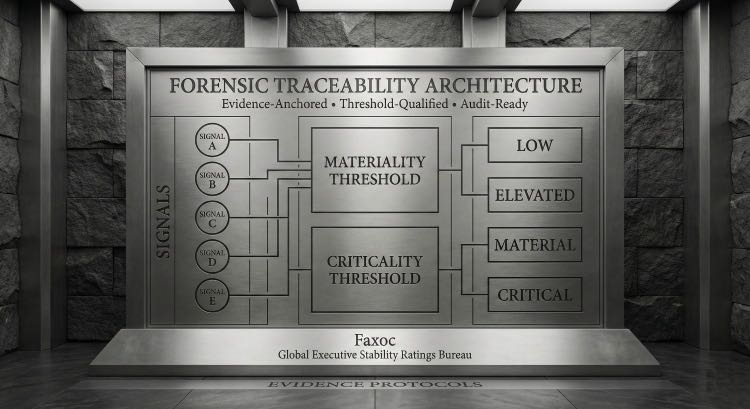 Institutional trust in risk diagnostics originates from forensic defensibility, not opaque algorithmic scoring. Faxoc ensures every structural conclusion remains traceable to empirical signals and rigid Evidence Protocols, neutralizing decision variance and preventing unjustified escalation.
