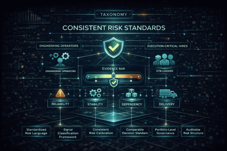 Faxoc Taxonomy provides a structured language for hiring risk, ensuring signals are consistently defined across roles, organizations, and portfolio environments. Instead of vague impressions, the taxonomy classifies execution, Read More