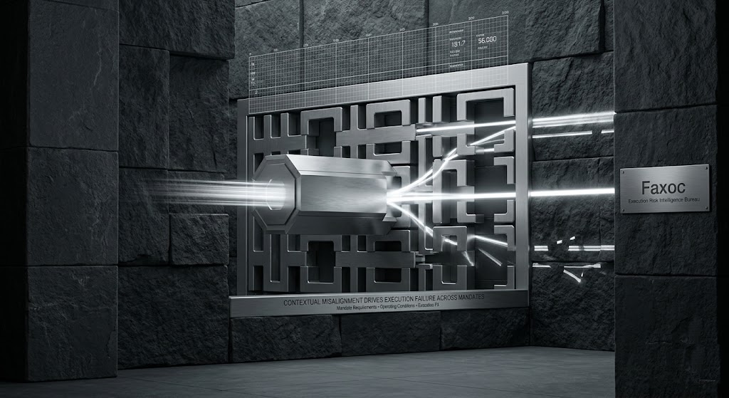 Execution outcomes are influenced by how well mandate requirements align with operating conditions. Differences in governance complexity, coordination demand, and decision velocity can alter execution behavior. When these conditions are not evaluated, misalignment emerges, leading to execution drag and inconsistent delivery. Faxoc addresses this gap by systematically evaluating execution context, ensuring that alignment is assessed before mandate activation.